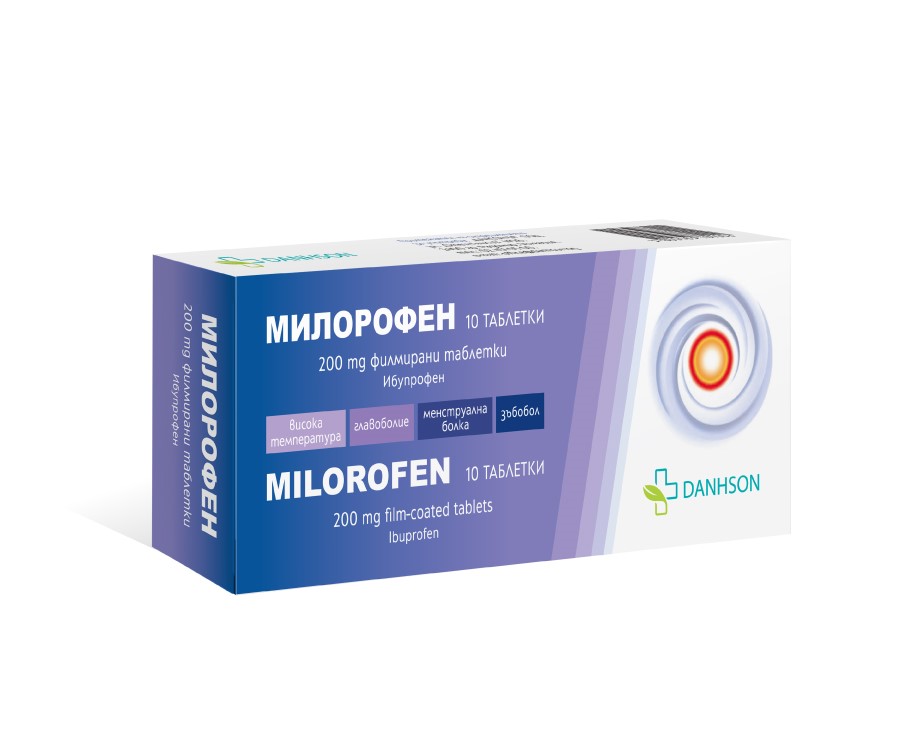 Милорофен съдържа Ибупрофен, който принадлежи към група лекарства, наречени нестероидни противовъзпалителни средства (НСПВС). Тяхното действие се изразява в намаляване на болката и възпалението, както и в понижаване на повишената температура.