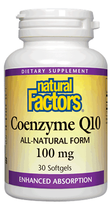Продуктът на Natural Factors, Canada предоставя 100% натурален, естествено ферментирал коензим Q10, източник на естествени транс-изомери, идентични с тези в човешкото тяло! Разтворен в масло от оризови трици за по-висока абсорбция. Коензим Q10 100 mg е сертифициран от ISURA, което гарантира, че в състава му няма ГМО, пестициди, разтворители и други вредни агенти! Преминал през специални тестове за проверка на качеството, включително мас-спектрален анализ, който може да открие над 400 вида пестициди, разтворители, тежки метали и др.