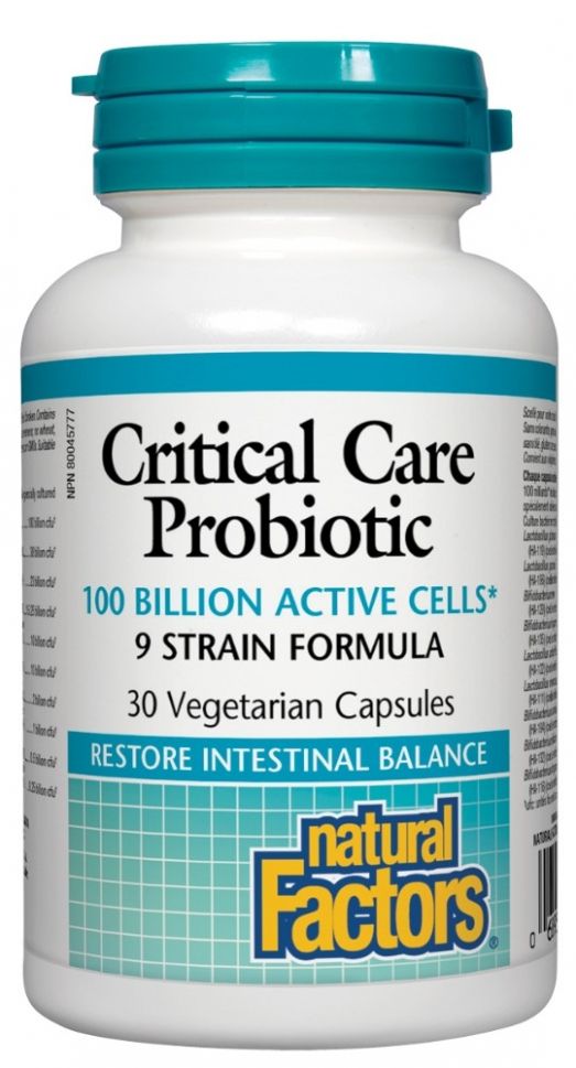 Пробиотик Critical Care Probiotic е иновативен пробиотичен продукт на Natural Factors, Canada, осигуряващ 100 млрд. активни пробиотици от 9 щама – бифидобактерии и лактобаци за добро здраве на червата.