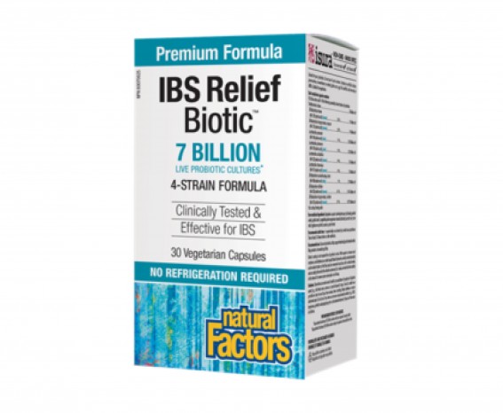 IBS Relief Biotic / Мултипробиотик 7 млрд. активни пробиотици е специално разработена формула за намаляване на симптомите при синдром на раздразненото черво (IBS). Всяка една капсула съдържа 7 млрд. активни пробиотици от 4 специално култивирани пробиотични щама - Lactobacillus helveticus, Lactobacillus rhamnosus, Bacillus subtilis и Enterococcus faecium.