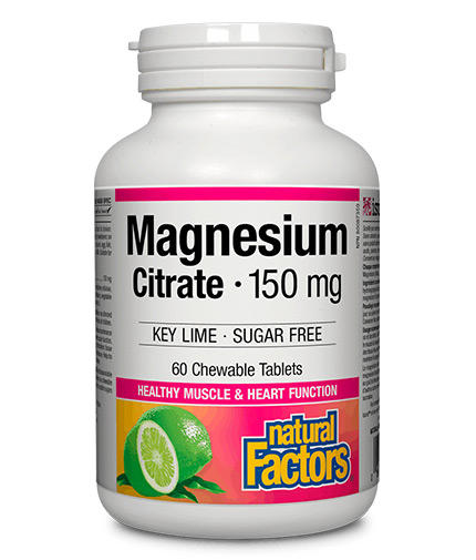 Всяка таблетка от продукта Magnesium Citrate на Natural Factors осигурява 150 mg високо бионаличен магнезиев цитрат, подпомагащ костната плътност, дейността на нервната система и мозъка, сърдечно-съдовата функция и енергийния метаболизъм.
