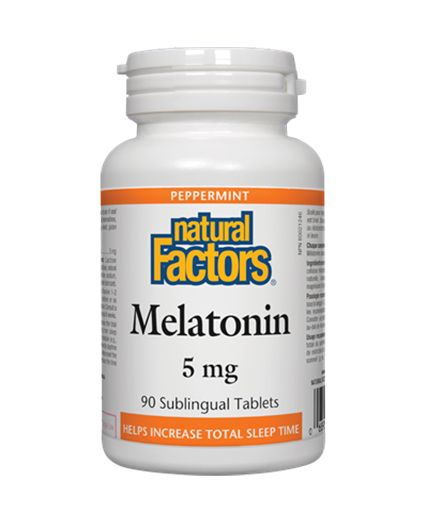 Мелатонин 5 mg, 90 таблетки, е продукт на Natural Factors – най-големият производител на природни добавки в Канада. Компанията предлага над 500 хранителни и диетичнипродукти, под формата на гел-капсули, проахове, тинктури и др.
