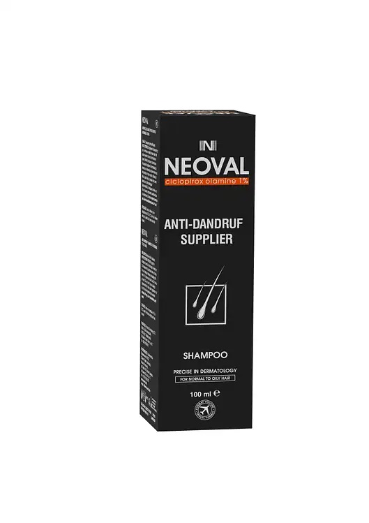 Neoval шампоан против пърхот за нормална към мазна коса съдържа в активната съставка ciclopirox olamine в точната концентрация от 1%. Циклопирокс оламин е широкоспектърен антимикотик с фунгицидно и фунгистатично действие. Клинични изследвания подкрепят ефективността на шампоан против пърхот с активна съставка ciclopirox olammine 1%. Neoval за нормална към мазна коса има в състава си патентован комплекс от съставки Sulfotrico, които е специално разработен за мазен и проблемен скалп.