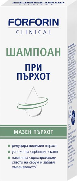 Форфорин шампоан при мазен пърхот представлява козметичен продукт, допринасящ за редуцирането на видимия пърхот,