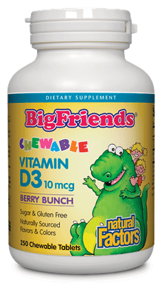 Витамин D3 Big Friends за деца е продукт от специализирана серия за детско здраве Big Friends на канадската компания Natural Factors.