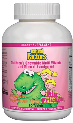 Мултивитамини BigFriends за деца (плодове от джунглата) съдържа висококачествен комплекс от витамини и минерали под формата на дъвчащи таблетки, специално създаден за деца. Препоръчва се за деца, които са податливи на чести боледувания през есента и зимата, спортуват активно или са подложени на по-интенивно умствено натоварване.