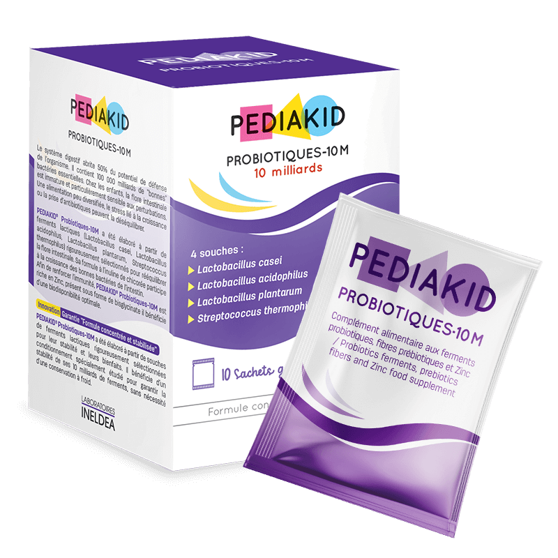 Състав: 10 милиарда млечнокисели бактерии (Lactobacillus casei, Lactobacillus acidophilus, Lactobacillus plantarum, Streptococcus thermophilus), инулин от цикория (900 mg) и цинк (3 mg) за подпомагане на имунитета. Всички количества са за 1 саше.
