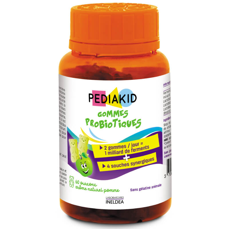 Състав: 4 вида млечнокисели бактерии (Lactobacillus casei, Lactobacillus acidophilus, Lactobacillus plantarum, Streptococcus thermophilus), глюкозен сироп, кристална захар от захарна тръстика, ябълков пектин. Съставките са внимателно подбрани, за да се възстанови баланса на чревната флора. Съставът е за 2 мечета и в него има 1 милиард пробиотични бактерии.