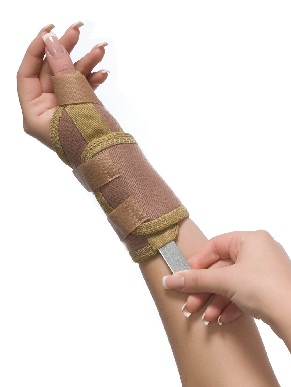 Осигурява надеждна фиксация и натиск в областта на китката и палеца.