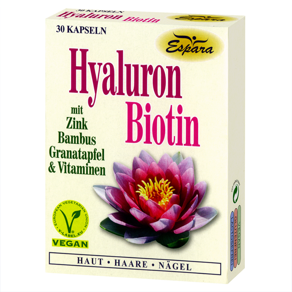 Съдържа комбинация от растителни екстракти с хиалуронова киселина, витамини и минерали за красива, гладка кожа и здрав и силен растеж на косата и ноктите. Хиалуроновата киселина е важен компонент на съединителната тъкан поради способността си да свързва големи количества водни молекули.