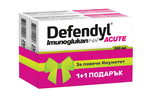 Дефендил-Имуноглюкан P4H® АКУТ е хранителна добавка под формата на капсули, която освен Имуноглюкан (300 mg), съдържа също витамин C и цинк, които играят роля при функционирането на имунната система.