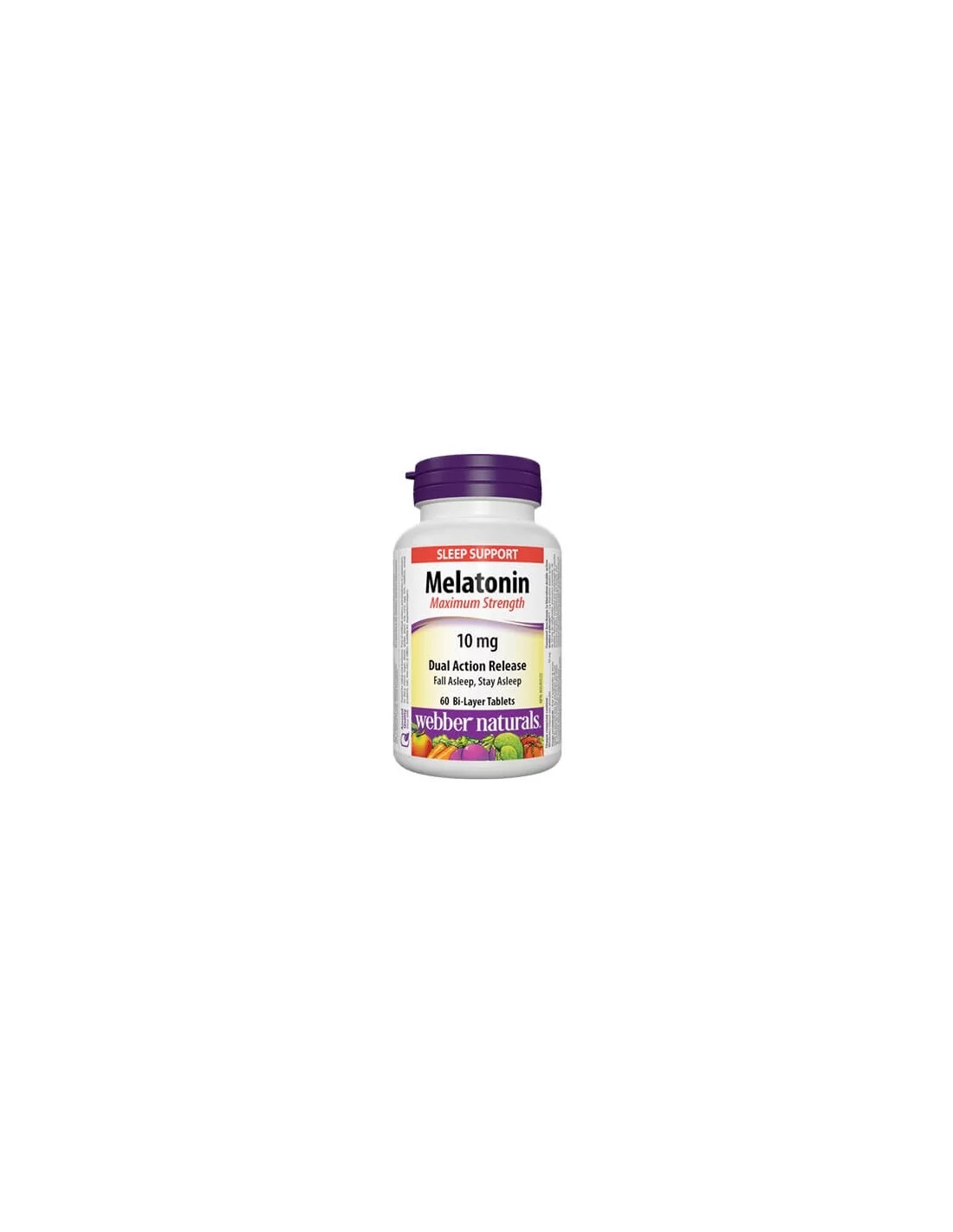 Продуктът Melatonin Maximum Strength на Webber Naturals съдържа мелатонин – натурално средство, което възстановява нормалния сън, без да предизвиква зависимост. Предлага се под формата на двуслойни таблетки, осигуряващи поетапното освобождаване на мелатонина, с цел 100% ефикасност. Всяка двуслойна таблетка е източник на оптимално количество мелатонин – 10 mg, който се усвоява отлично!