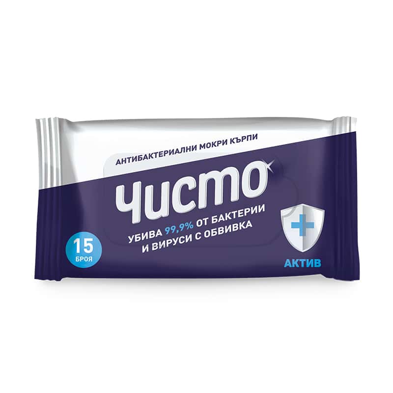 Антибактериални мокри кърпи ЧИСТО АКТИВ 15 броя