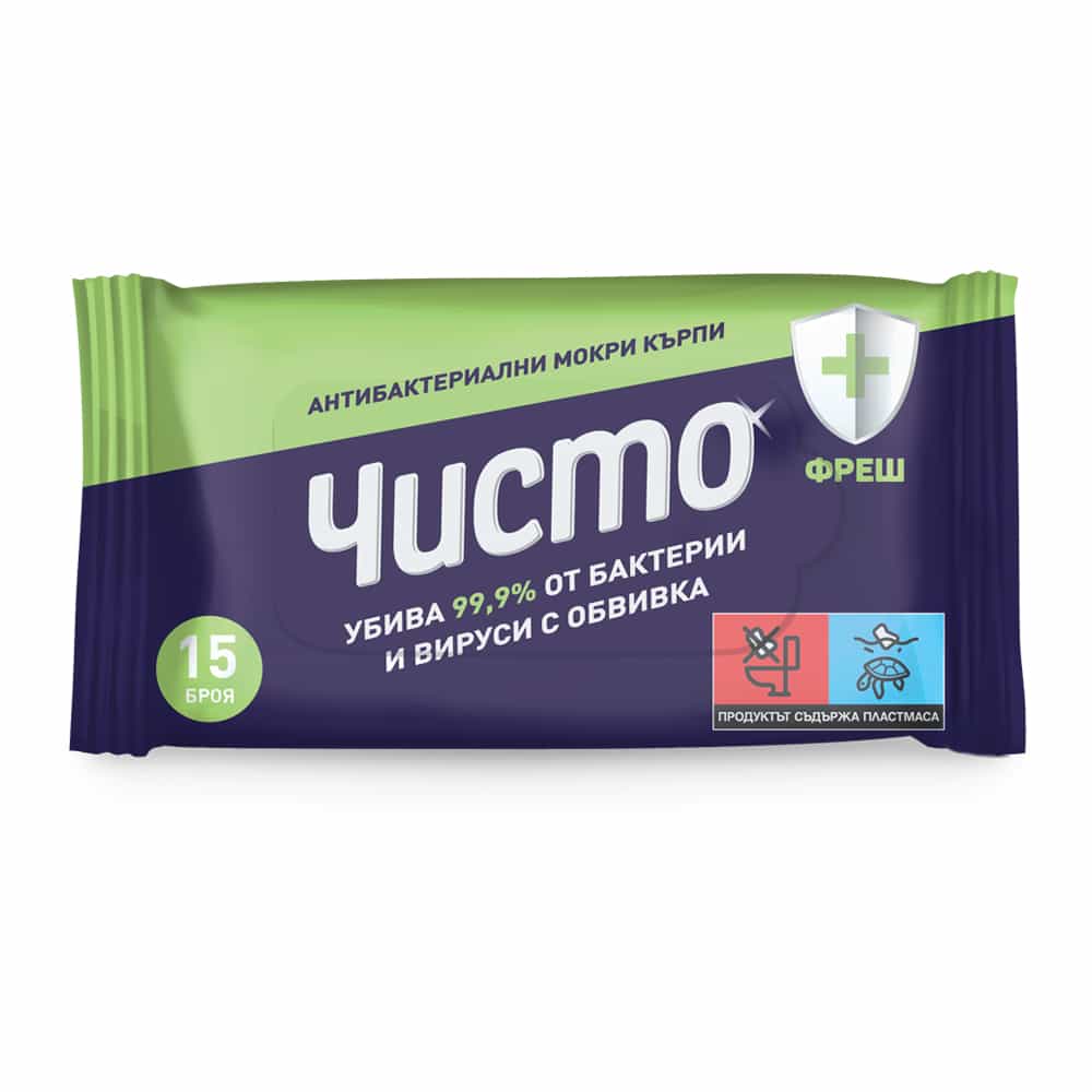 Антибактериални мокри кърпи ЧИСТО ФРЕШ 15 бр.
