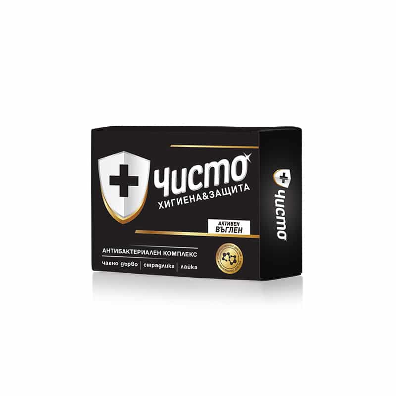 Почистващ сапун ЧИСТО АКТИВЕН ВЪГЛЕН с комплекс от натурални екстракти с антибактериален ефект. Ваш надежден помощник в борбата с бактериите. А сега и с детоксикиращо действие, благодарение на добавения активен въглен.
