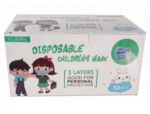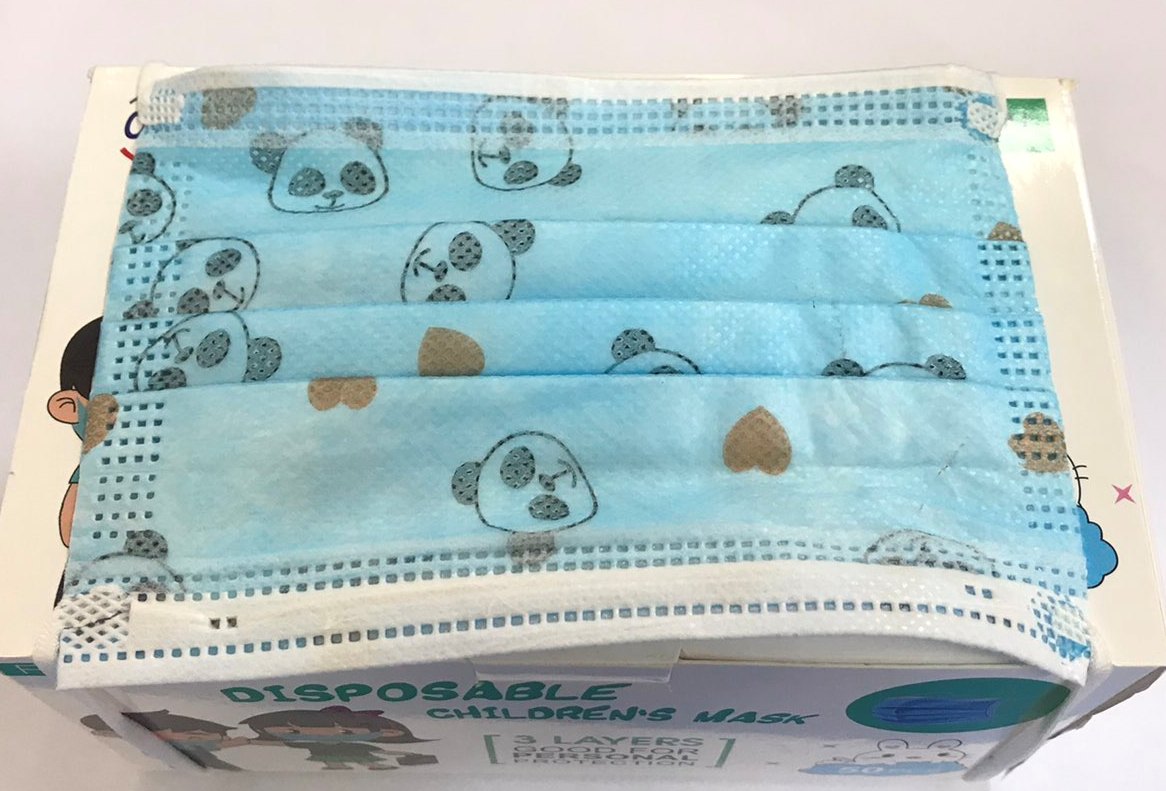 Трислойна детска предпазна маска за еднократна употреба, с ластик.