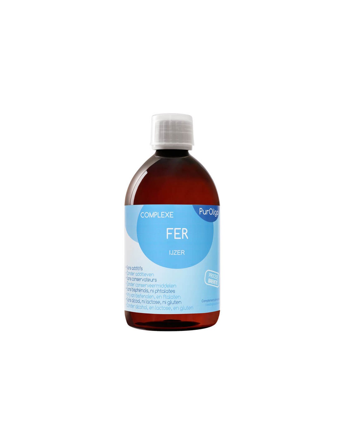 Complexe Fer PurOligo е естествен продукт, източник на желязо - жизнено важен за организма елемент. Йонизираният разтвор от 500 мл. се отличава с по-лесна усвоимост и висока бионаличност, не дразни стомаха, като осигурява нормалното образуване на червени кръвни клетки и хемоглобин. Желязото и медта в състава му допринасят за нормалния енергиен метаболизъм и общият ефект е за повишен тонус и намаляване на умората.