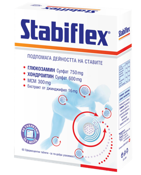Стабифлекс облекчава симптомите на остеоартрит - най-разпространеното заболяване на опорно-двигателния апарат. Повлиява благоприятно при болки в ставите, скованост, намален обем на движение и постепенна деформация на засегнатата става.