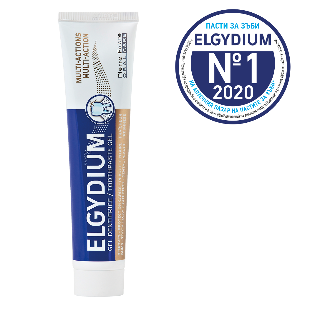 Elgydium Multi-Action Мултифункционална гелообразна паста за зъби за цялостна добра ежедневна орална хигиена.