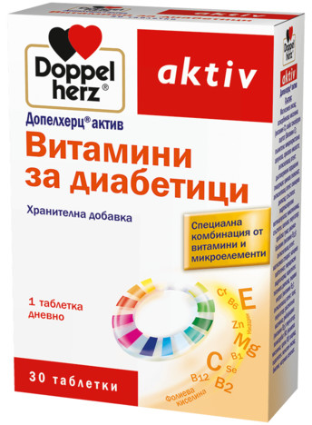 Допелхерц® актив Витамини за диабетици е хранителна добавка в грижа за болните с диабет. Допринася за поддържането на нормалната концентрация на глюкоза в кръвта и за поддържане на нормалната функция на нервната система.