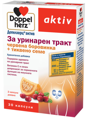 Допелхерц® актив За уринарен тракт е комбинация от естествени екстракти от червена боровинка и тиквено семе, която благоприятства нормалното състояние на уринарния тракт.