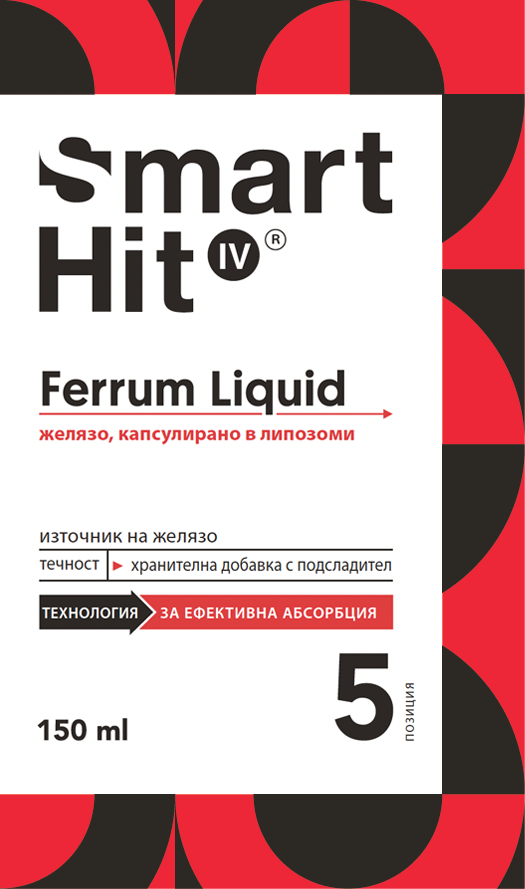 Липозомна течна форма на желязо. Желязото допринася за образуването на хемоглобина и нормалното транспортиране на кислорода до всички части на тялото. Според проучвания, желязото в SmartHit IV се усвоява до 3 пъти по-добре в организма.
