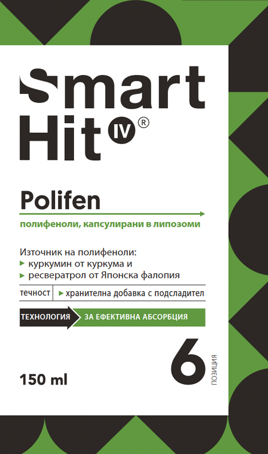 Smart Hit IV Полифен е водоразтворима форма на куркумин и ресвератол, разработена от Miosol® технологията за ефективна абсорбация, т.е. чрез вмъкване на екстракти от куркума и японска фалопия в микрокапсули.