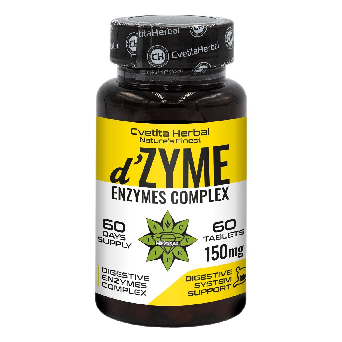 d'Zyme е съчетание от пет храносмилателни ензима – амилаза, неутрална протеаза, целулаза, лактаза, липаза в мултиензимен комплекс. d'Zyme е хранителна добавка, която подкрепя храносмилателната работа и обменните функции, доставяйки важни храносмилателни ензими в активна комбинация.