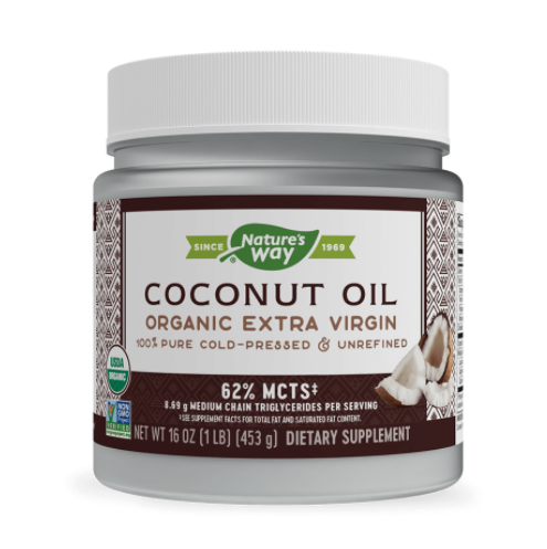 Coconut Oil Organic Extra Virgin на Nature’s Way е organic сертифицирано, extra virgin, студено пресовано, нерафинирано и с превъзходен вкус. Не съдържа транс-мазнини, ГМО, избелващи вещества, хексан. Произведено във Филипините! Продукт, сертифициран Organic от престижната организация Pro-Cert.