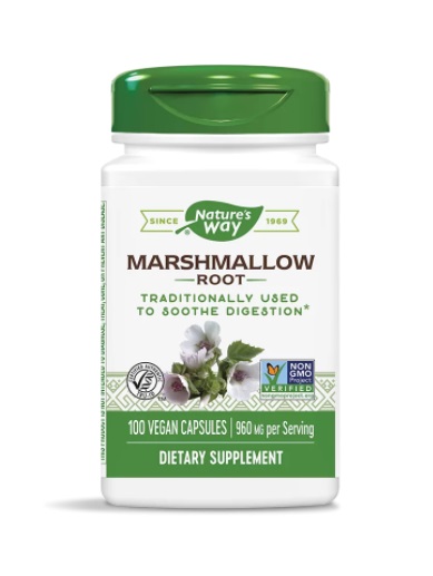 Marshmallow root на Nature’s Way с екстракт от бяла ружа е ефективно природно средство, полезно при възпалителни процеси в лигавиците на дихателната и храносмилателната системи – бронхити, фарингити, синуити, стомашни язви, диария, констипация, както и състояния, предизвикани от болезнени и възпалени лигавици в организма. Съгласно препоръките на Европейската Агенция по Лекарствата (EMA), екстрактът от корен на бяла ружа може да се използва в следните случаи:
