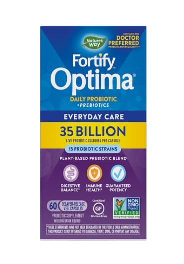 Фортифай Оптима е източник на уникална комбинация от 15 пробиотични щама с многостранно въздействие върху храносмилателната система. Всяка капсула съдържа 35 млрд. живи пробиотични култури от рода Lactobacillus и Вifidobacterium. Благодарение на високото количество активни бактерии и комбинацията от 14 щама във всяка капсула, функциите на храносмилателната система са напълно възстановени.