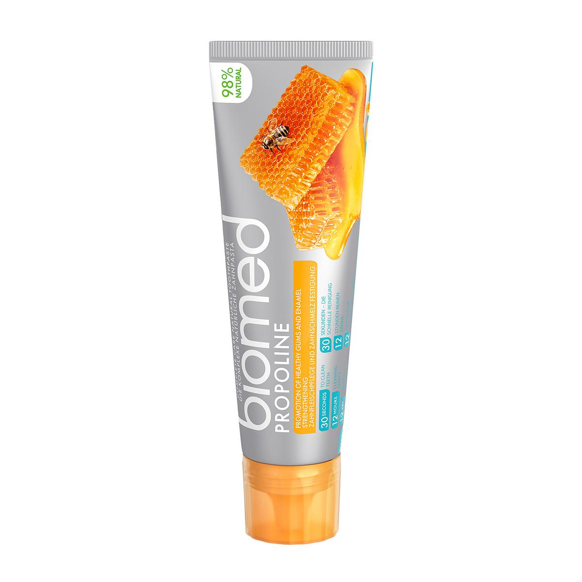 Biomed Propoline Паста за зъби успокоява венците, заздраява зъбния емайл и освежава дъха.