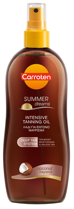 Олиото за интензивен тен Summer Dreams с напомнящ лятото аромат на кокос, хидратира и подхранва кожата със слънчогледово масло и екстракт от невен. Уникалната комбинация от масла за тен дава бърз и неустоим загар.