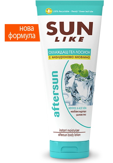 Охлаждащият гел за след плаж Sun Like доказано намалява ефекта „опъната кожа“, и хидратира дълбоко, благодарение на вложените високи концентрации уреа и хиалуронова киселина.