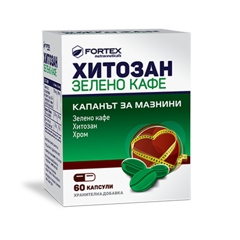 Хитозан Зелено кафе е иновативна формула със зелено кафе, хитозан и хром, която подпомага отслабването, оказва положителен ефект за редукция на килограмите и нормализиране на теглото.