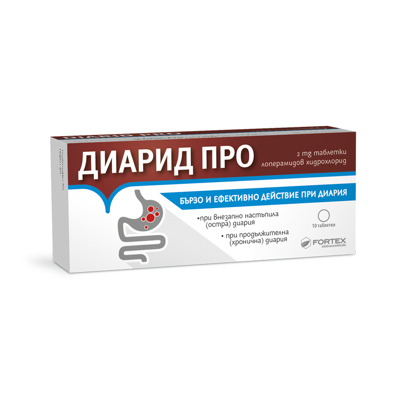 Фортекс Диарид Про съдържа лоперамидов хидрохлорид, който спада към групата на лекарства против диария (антипропулсив) - нормализира движението на червата, втвърдява изпражненията и повишава способността за задържане на изпражненията.