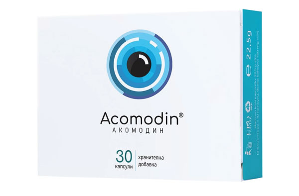 Акомодин е хранителна добавка в подкрепа на очното здраве при продължителна работа на компютър, четене и взиране в тъмното, шофиране на дълги разстояние и други дейности, изискващи интензивен фокус. Акомодин спомага за облекчаване на замъгленото зрение и напрежението в очите и за по-бързото възстановяване на зрителната функция.