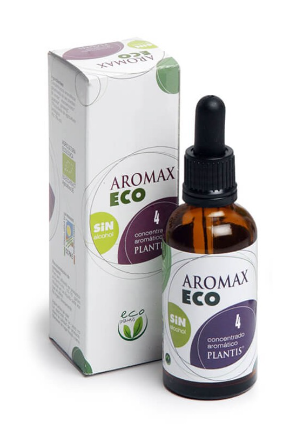 Aromax Eco 4 Plantis® е билкова тинктура, глицериран ароматен концентрат от бреза, мечо грозде и коприва – растения, отгледани от биологично земеделие. Не съдържа алкохол! Тя е продукт с гарантирано качество от испанската компания Artesania Agricola - лидер в производството на хранителни добавки от натурални източници. Помага при: