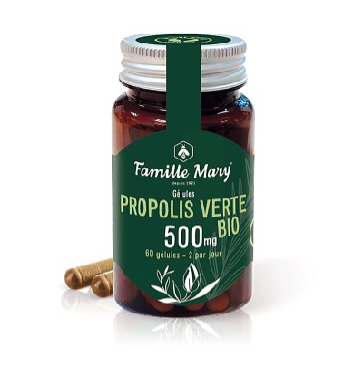 Propolis Verte BIO e хранителна добавка с органичен зелен прополис, а зад качеството й застава Famille Mary® - френска семейна компания с история от 1921 г., която започва с…дядовата мелница в сърцето на регион Анжу в долината на Лоара. С днешна дата фамилната памет е съхранена чрез медоносната къща Beau-Rivage, където Famille Mary произвежда и предлага богат избор от мед и природни продукти, а качеството им е гарантирано със стриктен лабораторен анализ и контрол. Тъй като зеленият прополис се добива само от растението Baccharis Dracunculifolia, от Famille Mary® работят с пчелар партньор в Бразилия, който отговаря на изискванията за качество и философията на компанията: Cézar Ramos Jûnior притежава 4000 кошера в малко селце в горите на Минас Жерайс, където от десетилетия събира ценната суровина.