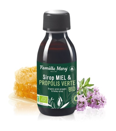 Пчелният мед в състава на Sirop Miel & Propolis Verte Bio/ Сироп с пчелен мед и зелен био прополис е добит от собствени кошери на френската компания Famille Mary, като се отличава с високо качество и производство под стриктен лабораторен контрол. Медът традиционно укрепва организма, действа при интоксикации, успокоява нервната система и подобрява състоянието на сърдечно-съдовата система.
