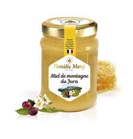 Miel de montagne du Jura се произвежда от нектара, който пчелите събират от дивте растения на планината Юра, Източна Франция. Зад качеството на продукта застава Famille Mary® - френска семейна компания с история от 1921 г., която започва с…дядовата мелница в сърцето на регион Анжу в долината на Лоара. С днешна дата фамилната памет е съхранена чрез медоносната къща Beau-Rivage, където Famille Mary произвежда и предлага богат избор от мед и природни продукти, а качеството им е гарантирано със стриктен лабораторен анализ и контрол.