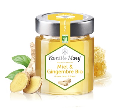 Miel & Gingembre Bio на френската компания Famille Mary е отличен избор именно за стимулиране работата на стомашно-чревния тракт. Нейните натурални съставки са чисти, добити само от органични ферми. Само 1 чаена лъжичка от тази вкусна смес от био акациев мед и етерично масло от джинджифил, приемана по време на сутрешната закуска, ще достави истинска наслада на вкусовите ви рецептори, ще осигури ефективно усвояване на приетата храна в рамките на целия ден и ще ви зареди с много енергия.