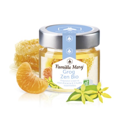 Осигурете си душевно спокойствие, намалете усещането за стрес и напрегнатост, насладете се на спокоен сън с релаксиращата смес Zen Bio grog на френската компания Famille Mary – уникален по своята формула и изцяло натурален продукт. Той съчетава акациев мед с 5 етерични масла, известни със своите ползи за нервната система. Всички съставки в Zen Bio grog са произведени от биологично земеделие, а качеството им е гарантирано със стриктен лабораторен контрол.