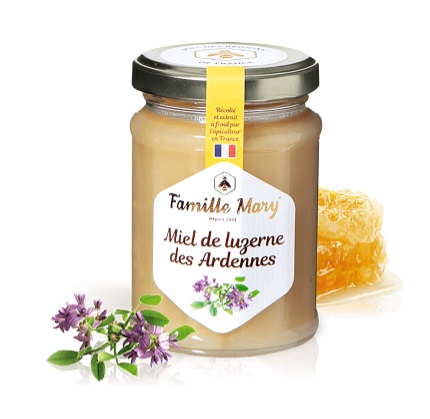 Miel de luƺerne des Ardenes на френската компания Famille Mary е истинска съкровищница от вкусове и богат хранителен състав и се добива в района на Ардените, Франция. Той притежава пребиотично действие, антисептични и антибактериални свойства, помага за поддържане на нормални нива на кръвната захар, намалява болката при артрит и ревматизъм и е чудесен естествен лек за кожни проблеми, кашлица и възпалено гърло.