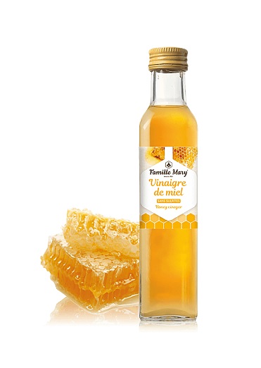 Vinaigre de miel/Меден оцет на френската компания Famille Mary е сред най-добрите продукти на пазара. Той е нискокиселинен (5°) и нежен към стомаха. Спокойно може да го добавите към ежедневните си хранителни ритуали, разреден в чаша вода. Съдържа микроелементи, ензими и аминокиселини, които имат съществен принос за здравето, общото ни благополучие и хранителен баланс.