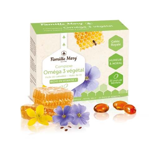 Силно сърце, стойности в норма на холестерола и триглицеридите, защита от атеросклероза, спокойна нервна система и отлична памет – това са само някои от ползите, които осигуряват на тялото омега-3 полиненаситените мастни киселини. Те са важен източник на хранителни вещества, като зареждат организма с ценни жизнени сили, а френската компания Famille Mary ни предлага отличен начин за техния прием под формата на Complexe Oméga 3 végétal, обогатен с пчелно млечице и натурален витамин Е. Тази високоефективна хранителна добавка, богата на алфа-линоленова киселина от растителни източници, е сред най-високо оценените от клиентите на Famille Mary продукти, като 80 % от тях признават, че биха го препоръчали на близки и познати (според резултатите от попълнени анкети).