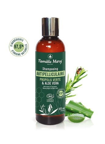 Нежен, мек и с деликатен аромат, Shampooning Antipеlliculaire Propolis Verte and Aloe Vera - Био шампоан против пърхот с алое вера и зелен прополис ще ви помогне да преборите пърхота и да предотвратите повторната му поява. Той има ефективно действие, като се отличава с високо качество и изцяло натурални съставки, добити от био производство – запазена марка на френската медоносна къща Famille Mary®.