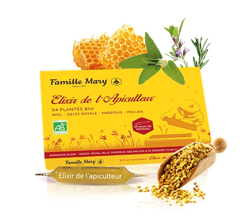 Ампулите Elixir de l’Apiculteur® ще ви помогнат да възстановите цялата си жизнена сила, защото са коктейл от супер съставки с ефекта на енергийна бомба. Те са онова мечтано средство за бърз и незабавен ефект, което буквално ви вдига на крака, независимо дали става дума за повишаване на тонуса, работоспособността, общото усещане за благополучие или искате да изградите мощна бариера срещу вируси и настинки, да се предпазите от често боледуване. Elixir de l’Apiculteur® се препоръчва на възрастни и деца над 12 години, на здрави хора с профилактичен ефект, боледуващи или възстановяващи се след прекарани заболявания. Продуктът действа единствено чрез силата на природата по патентована формула, вдъхновена от пчеларя Жан Мери, създател и идеен вдъхновител на семейната компания – медоносна къща Famille Mary®.