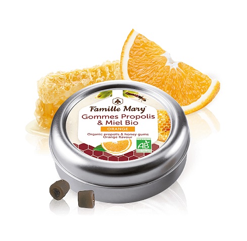 Gommes de propolis bio au miel et orangе - Бонбони за смучене с био мед прополис и портокал се препоръчват за възстановяване на загубен глас, пресипнал глас, при проблеми от разнообразно естество. Действат при простуда, ларингит, ангина, раздразнено и възпалено гърло, сухота и възпаляване на лигавиците, възпаление на гласовия апарат, при сухо кашляне. Помагат при сухота в гърлото следствие на алергии, дишане основно през устата.