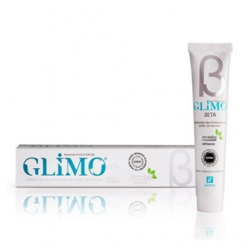 Glimo beta е натурална мултифункционална паста за зъби. Благодарение на специално формулираното естествено защитно и възстановяващо съдържание, включващо и дикалциев фосфат дихидрат, натуралната паста за зъби Глимо Бета помага да намалите проблемите с венците, възвръща естествената белота на зъбите, предотврятява образуването на плака, премахва лошата миризма от устата и защитава зъбите от кариес, без да уврежда емайла и без да причинява чувствителност още след първото миене. Натуралната паста за зъби Глимо Бета помага да се поддържа общото здраве на устната кухина и зъбите и осигурява свежест в устата през целия ден, благодарение на съдържанието на прополис, етерично масло от лютива мента и ментол в състава си.